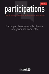 Participating in the Chinese World: Connected Young People No 17, 2017/1 - pagesPages 5 to 33Chinese Young People in Different National Spaces: Political Expressions and InvolvementsBy Émilie Frenkiel, Simeng WangPages 35 to 58Online Public Opinion and the New Order of the Chinese RegimeBy Séverine ArsènePages 59 to 90Rumors and Mobile Phones: Participation and Resistance in Contemporary ChinaBy Jun LiuPages 91 to 120What is the Role Played by Public Opinion in the Governance of China? The Launch of the PM2.5 Campaign in 2011By Nolwenn SalmonPages 121 to 153Hacking Democracy: Audrey Tang and the Reinvention of Taiwanese PoliticsBy Émilie FrenkielPages 155 to 176The Political Resocialization of International Migrants and their Political Talk: The Case of Young Qualified Chinese in ParisBy Simeng WangPages 179 to 201Distancing Sexism? Osez le féminisme! and La Barbe’s Actions in the PressBy Marion DalibertPages 205 to 222Rebuilding Technical Democracy? The Current Situation and Prospects of Participation in the Government of Science and TechnologyBy Clément Marquet