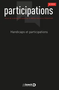 Disability and participation No 22, 2018/3 - pagesPages 5 to 28Introduction. Making the participation of people with disabilities effectiveBy Benoît Eyraud, Sébastien Saetta, Tonya TartourPages 29 to 51Participation in a peer group as a useful condition for generating experiential knowledge: The example of people who hear voicesBy Ève GardienPages 53 to 82The vote without the politics? Professional mobilizations for electoral accessibility in 2017By Marie-Victoire BouquetPages 83 to 107Health status and legal status: Forms of participation of patients in judicial reviews of involuntary psychiatric care in New YorkBy Tonya Tartour, Alexander BarnardPages 109 to 138Participation of persons with disabilities in democratic debate: looking back on a participative approach about UN Convention on the rights of Persons with disabilitiesBy Benoît Eyraud, Sébastien Saetta, Iuliian Taran, Jean-Philippe CobbautPages 139 to 158Disabled witnesses, valid experts: Mobilization in favor of sexual rightsBy Pierre Brasseur, Jacques RodriguezPages 159 to 183The bottom line is that they eat. Invited or prevented participation of residents in residential care homes (EHPAD)By Laura GuérinPages 185 to 211Unlikely organizations facing participation. A comparative analysis of prisoners’ unions in France and the United StatesBy Joël Charbit, Gwenola Ricordeau