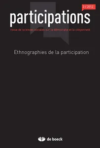 Ethnographies de la participation N° 4, 2012/3 - pagesPages 7 à 48Ethnographies de la participationPar Daniel Cefaï, Marion Carrel, Julien Talpin, Nina Eliasoph, Paul LichtermanPages 49 à 77La démocratie urbaine au prisme de la communautéPar Mathieu BergerPages 79 à 102Délibérer au sein d'un mouvement socialPar Héloïse NezPages 103 à 127Les assemblées de desocupados dans la périphérie sud de Buenos AiresPar Pia V. RiusPages 129 à 153Mobiliser et mettre en scène des « leaders »Par Hélène BalazardPages 155 à 178Comment la cartographie méconnaît les habitantsPar Julien CharlesPages 179 à 206Cachez ce politique que je ne saurais voir !Par Marion Carrel, Julien TalpinPages 209 à 230La démocratie a-t-elle encore une dimension épistémique ?Par Jürgen Habermas, Isabelle Aubert, et Katia GenelPages 233 à 246Pétrole, OGM, nanotechnologies : quels enjeux démocratiques ?Par Emanuel Bertrand