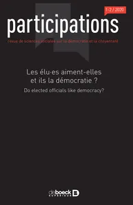 Les élu·es aiment-elles et ils la démocratie ? N° 26-27, 2020/1 - pagesPages 5 à 5Remerciements de l’équipe de coordinationPar Guillaume Petit, Marion Paoletti, Rémi LefebvrePages 7 à 40Les élu·es aiment-elles et ils la démocratie ?Par Guillaume PetitPages 41 à 75Les adjoint·es à la démocratie participative. Une catégorie d’élu·es entre spécialisation fonctionnelle et misère positionnellePar Rémi Lefebvre, Julien Talpin, Guillaume PetitPages 77 à 103La démocratie participative au secours du paternalisme des élus. À propos des usages politiques d’un budget participatifPar Jessica SaintyPages 105 à 134La métropole, une affaire d’élus. La mise à distance des citoyens dans la réforme territoriale (2012-2016)Par Christophe ParnetPages 135 à 164Les budgets participatifs sont encore partisans. (Dé-)partisanisation des budgets participatifs parisiens (2014-2020)Par William Arhip-PatersonPages 165 à 192Participation du public en aménagement et urbanisme au Québec : les maires face à l’impératif délibératifPar Mario Gauthier, Lynda Gagnon, Guy Chiasson, Anne MévellecPages 193 à 222Rapport au système représentatif et soutien à la démocratie directe et délibérative. Analyse comparée des attitudes des élus nationaux en EuropePar Caroline ClosePages 223 à 249L’émancipation des habitants pour une gouvernance adaptative de la biodiversité : étude d’un dispositif participatifPar Sylvie Houte, David Lorant, Nicolas BecuPages 251 à 275Faire participer par le théâtre dans un quartier populaire de TurinPar Francesca QuerciaPages 277 à 296Aux racines de la désaffection politique. Dépolitisation, néolibéralisme et alternatives démocratiquesPar Maïté Juan